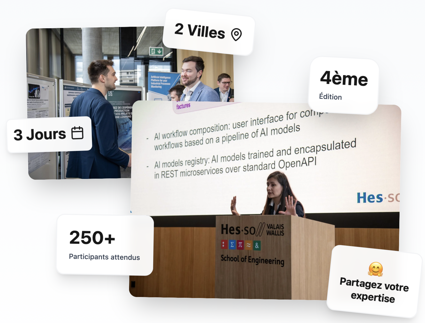 - Connectez-vous avec les chercheurs en IA et ingénieurs HES-SO, explorez des cas d'usage réels du machine learning et découvrez comment votre PME peut tirer parti de l'intelligence artificielle et des technologies de machine learning.